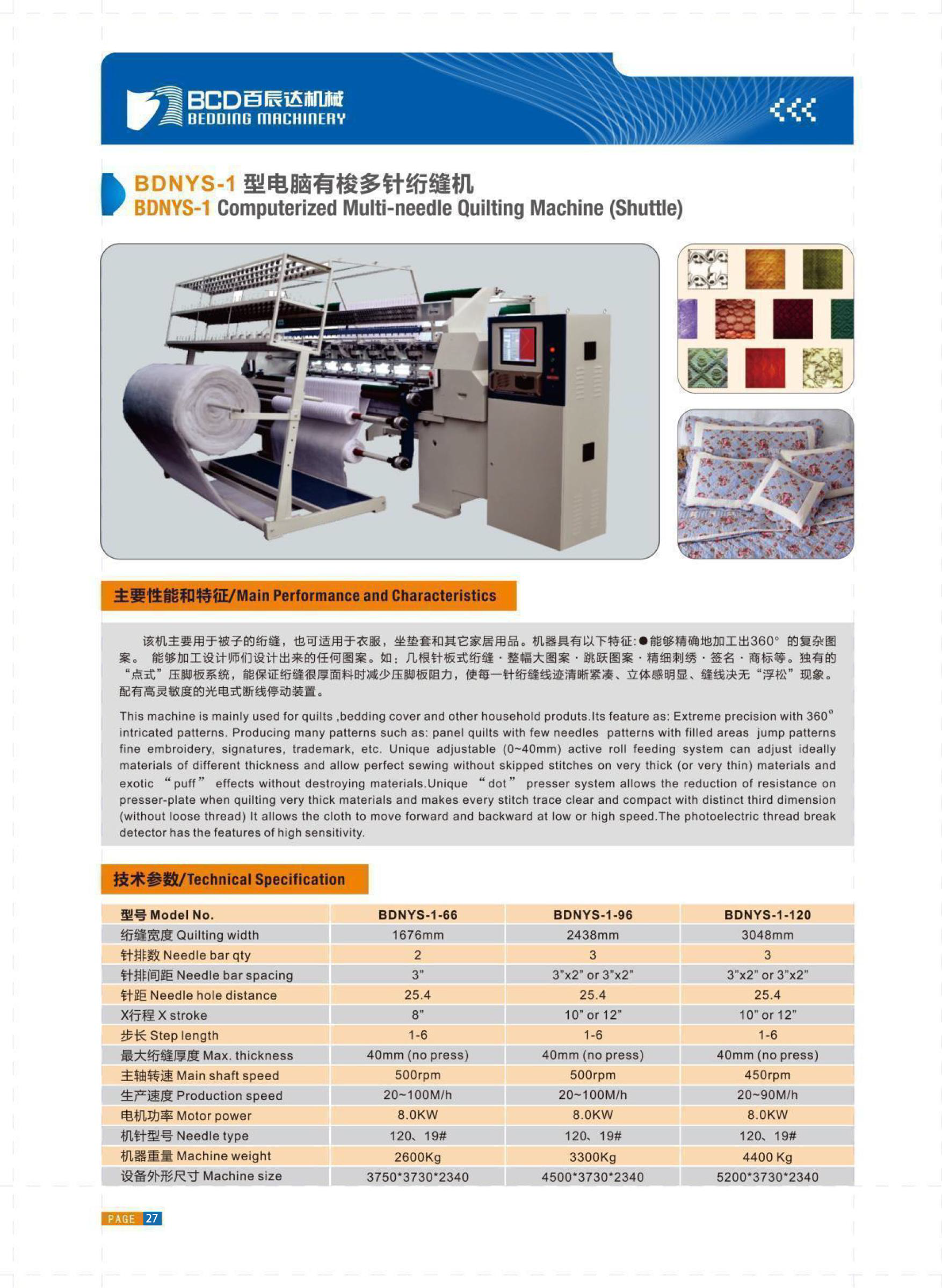 | BDNYS Multi-needle Quilting Machine (Shuttle) | |||